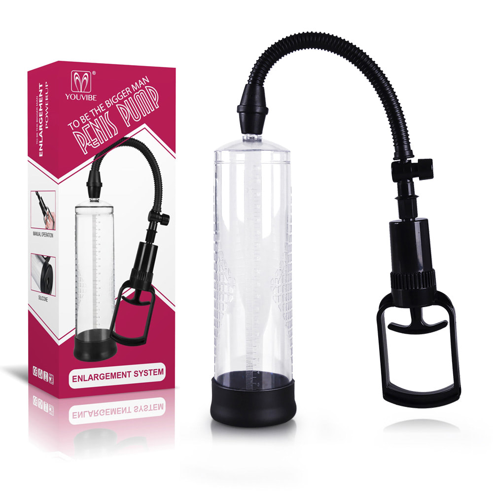 Pênis Pump, bomba peniana desenvolvedora com sucção manual, tubo grande e anel de vedação, projetada para o exercício da musculatura do pênis promovendo um aumento na potência sexual, reduzindo os níveis de sensibilidade e prolongando o tempo da relação com melhores níveis de ereção, não havendo contra-indicações por ser um exercício. - Imagem ilustrativa.