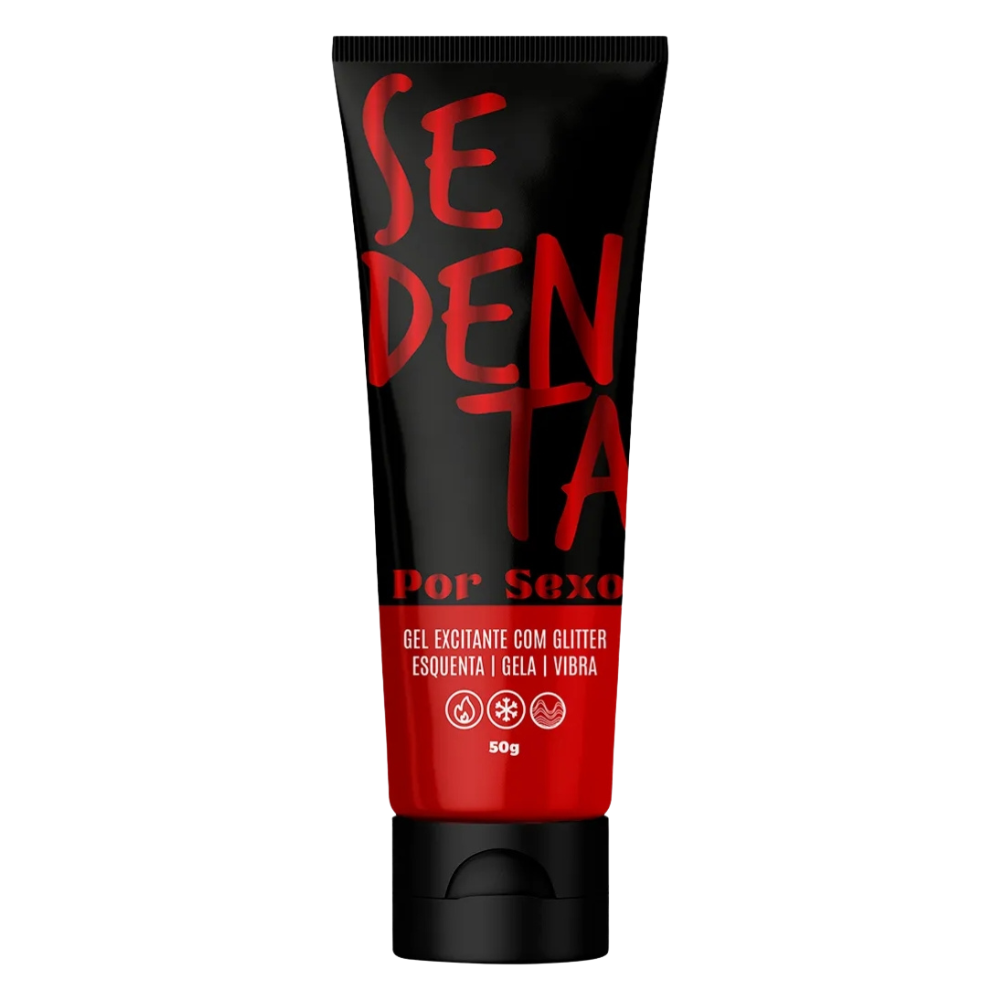 Sedenta por Sexo 50g, gel excitante unissex intensificador de multiplas sensações desenvolvido com uma fórmula que proporciona as sensações de aquecimento, refrescância e vibração, possui um sabor irresistível de menta com lichia em uma textura de fácil absorção, aroma de caju verde com ação adstringente, além de possuir arginina, cravo, mentol e jambu, ativando a circulação da região, sensibilizando e estimulando, um verdadeiro mix de sensações para sedentos por sexo. - Imagem ilustrativa.