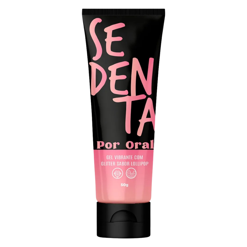 Sedenta por Oral 50g, gel excitante vibrante e beijável com uma textura leve e gostosa ao toque com a pele, formulado com Jambu que proporciona a sensação de vibração e estimula a região íntima, contribuindo com o aumento da salivação, sendo ideal para quem gosta de um sexo oral bem molhado com um toque doce de pirulito lollipop. - Imagem ilustrativa.