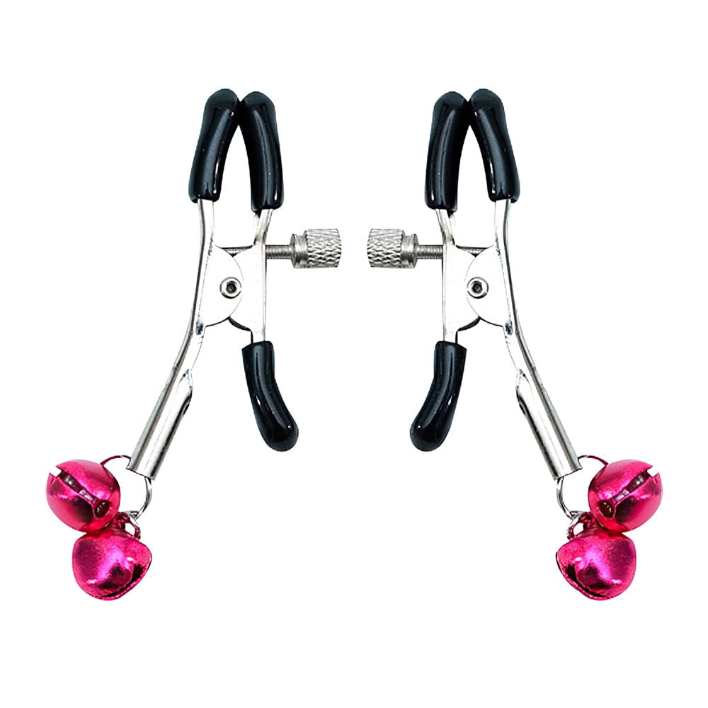 Grampos com Guizos, um acessório sofisticado e funcional projetado para adicionar um toque de excitação e estilo às suas experiências, com ajuste de pressão e pinças emborrachadas para estímulo dos mamilos e do clitóris, enquanto os guizos de metal adicionam um elemento sonoro, para atender solteiros e casais intensos inspirados nos clássicos do cinema e literatura realizando seus fetiches e fantasias eróticas. - Imagem ilustrativa.