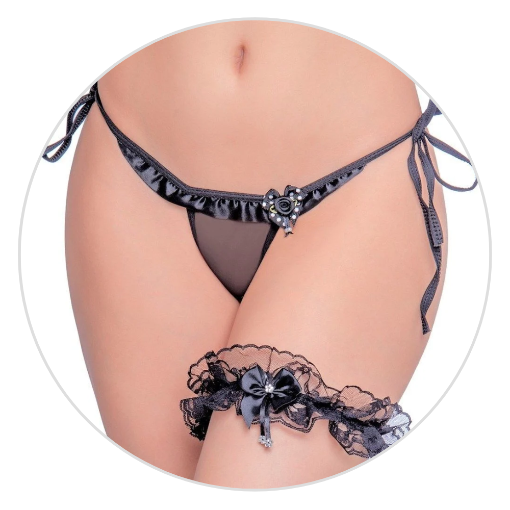 Persex Preto, a tiara larga com laço e pedrinha brilhante para a coxa é um acessório sensual com acabamento rendado produzido especialmente para incrementar suas fantasias ou lingeries compondo um visual ousado e sedutor, confeccionada com materiais de qualidade, proporciona conforto e ajuste perfeito ao corpo de forma versátil podendo ser utilizada como um adereço na cabeça ou nos pulsos. - Imagem ilustrativa.
